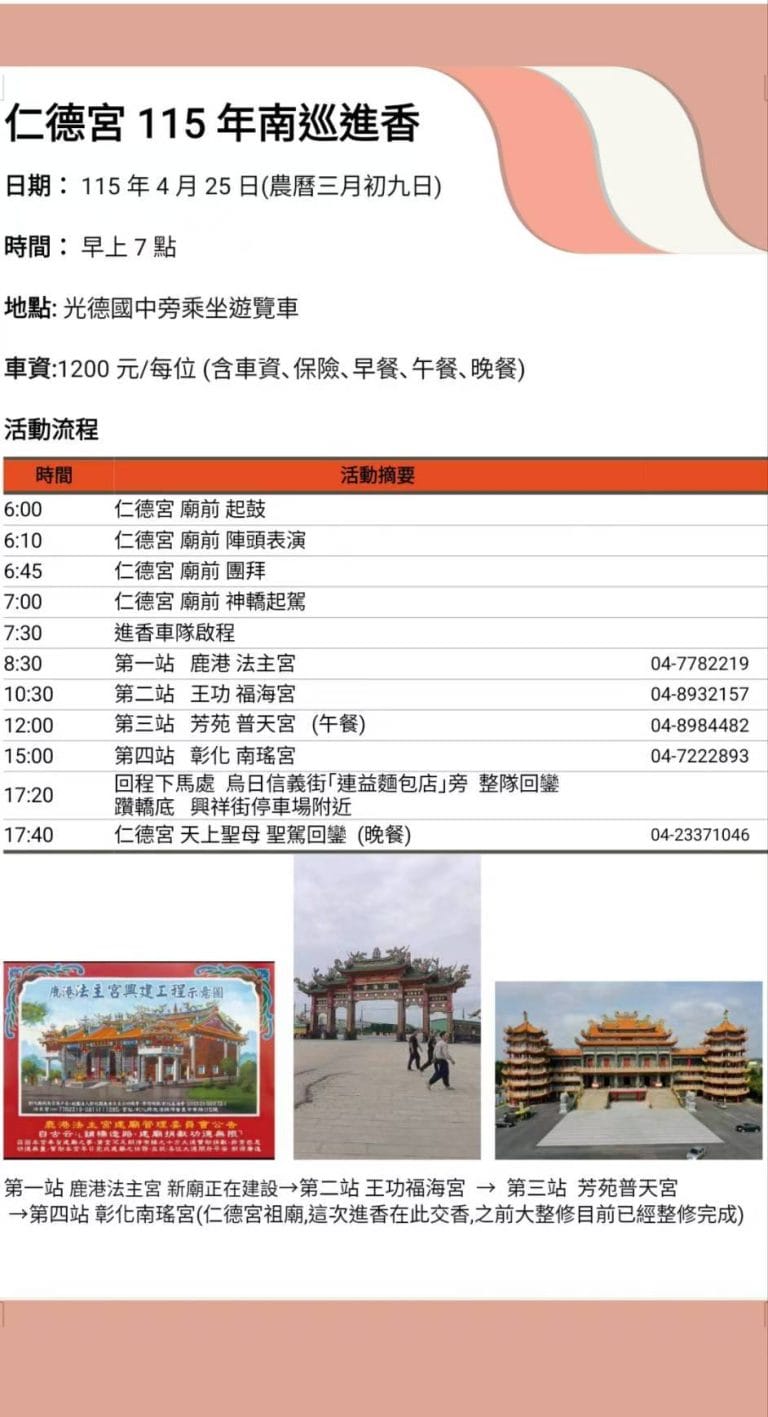 誠心一念,神明自知;善行一樁,福報隨行。仁德宮誠摯歡迎十方善信蒞臨參拜,焚香祝禱,共沐媽祖聖恩,同享平安、順遂與福澤。